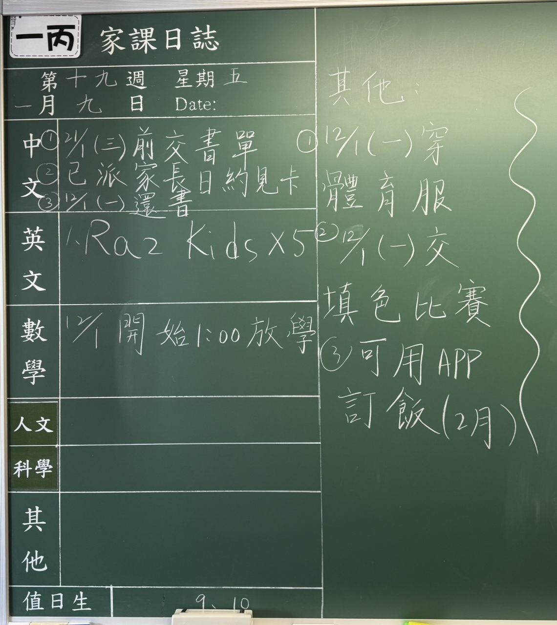班別家課
