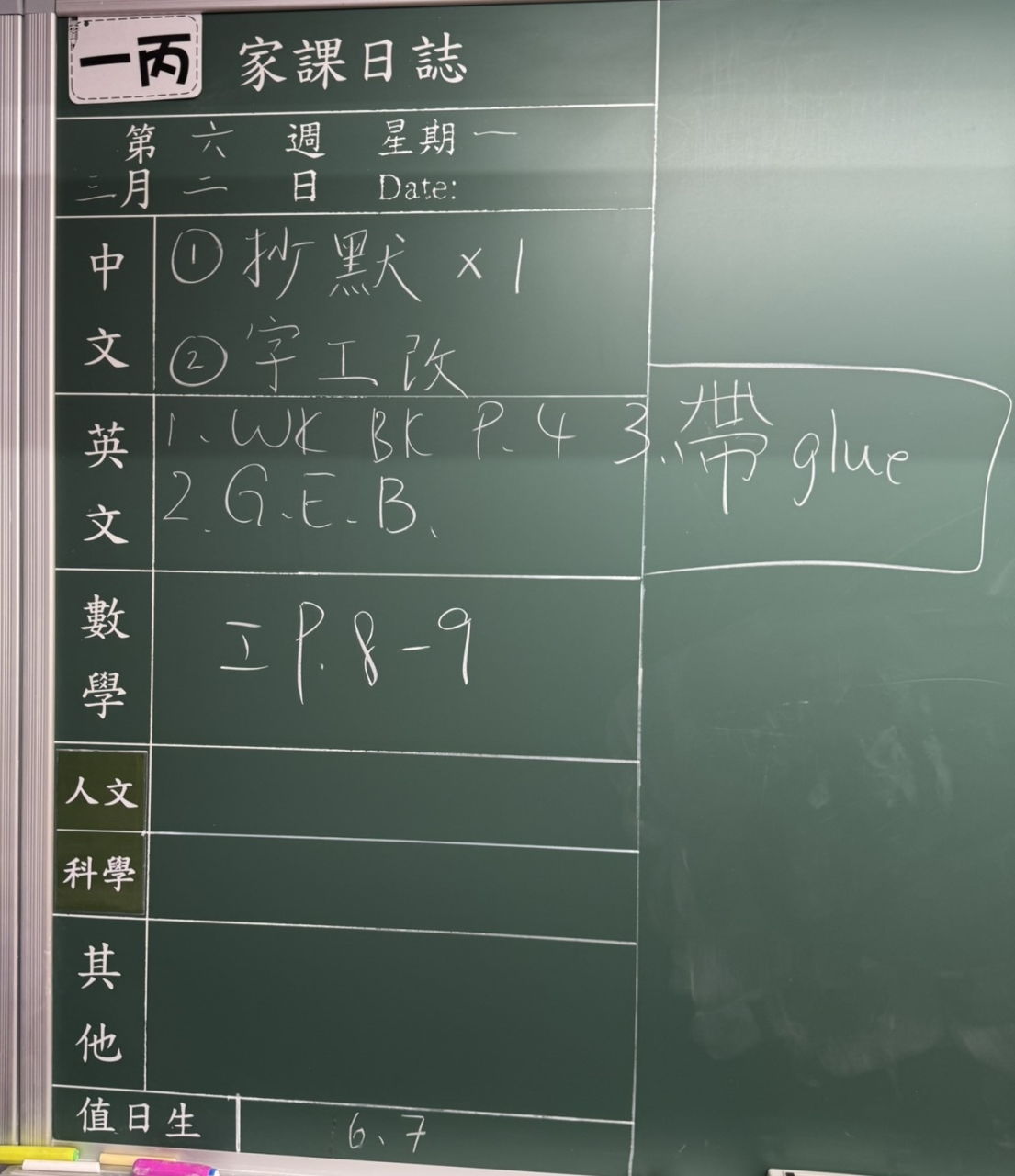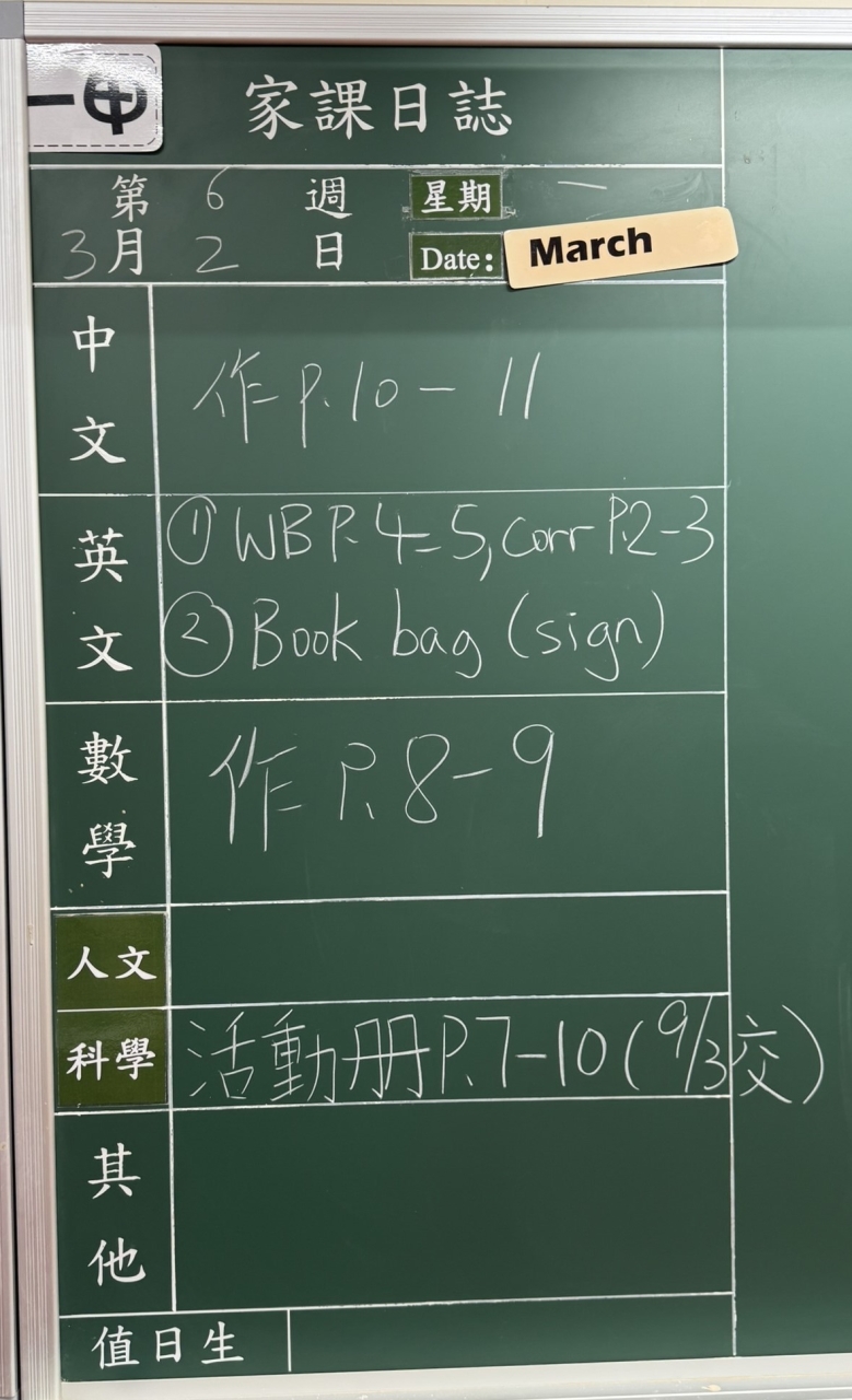 班別家課