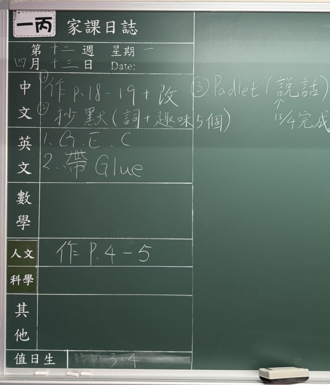 班別家課