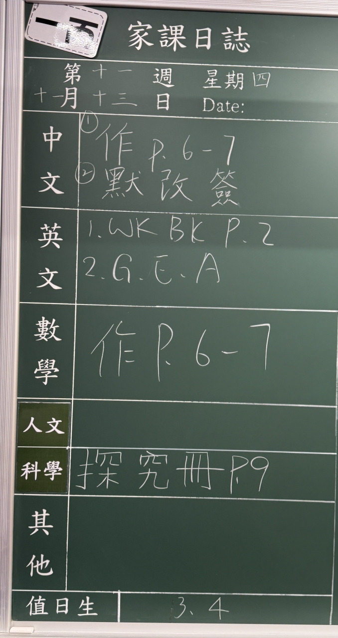 班別家課